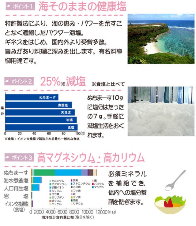 Mgを豊富に含む沖縄の海塩「ぬちまーす」は現在品薄で、高値取引されているようです。